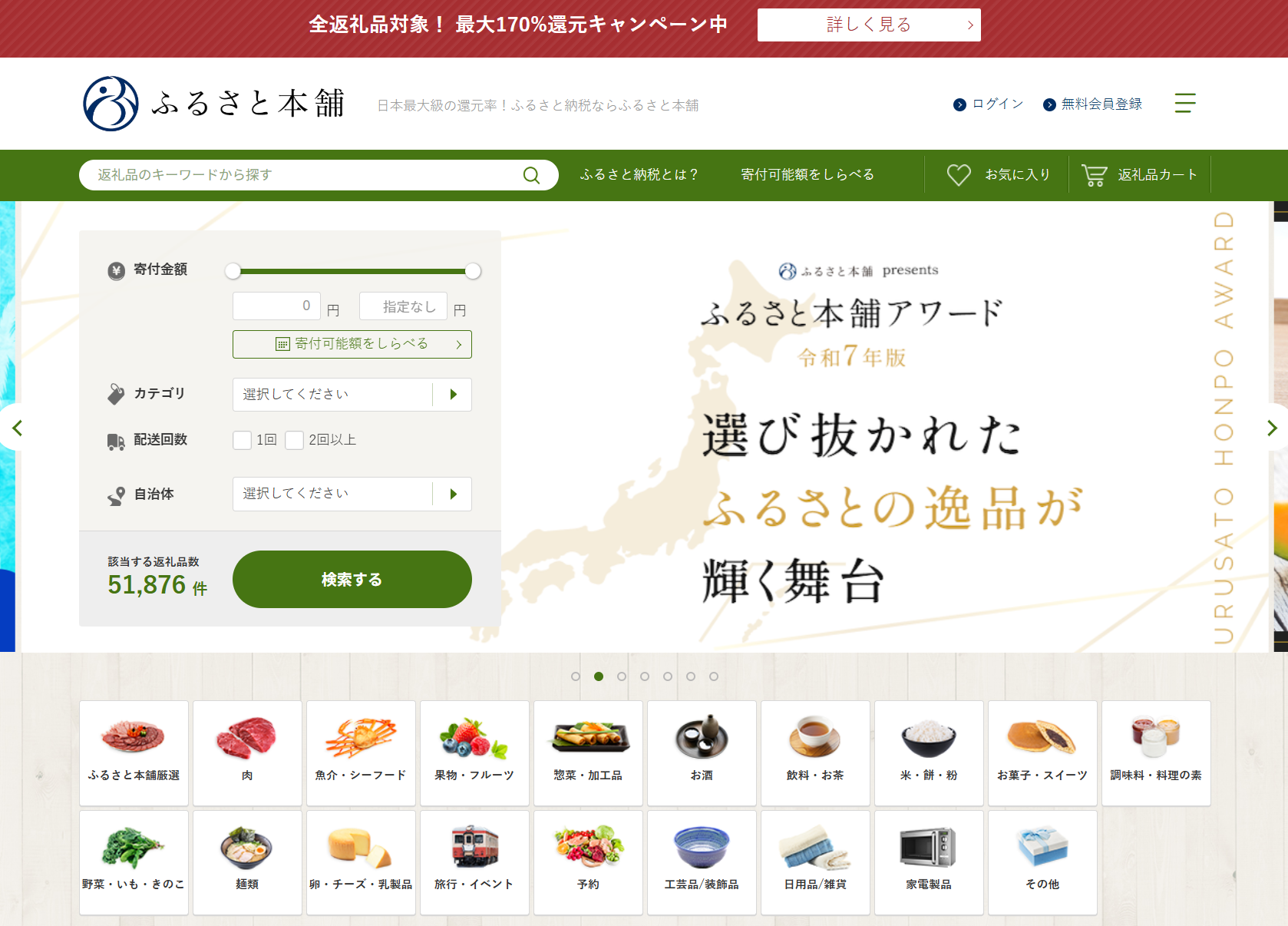 選び抜かれた特産品が豊富に揃うふるさと納税サービスです。